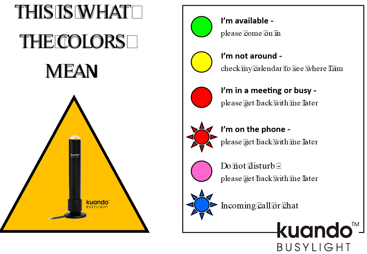 The Kuando website also has a few extra resources to help with implementation. My favorite is a customizable sign that indicates what the colors mean.