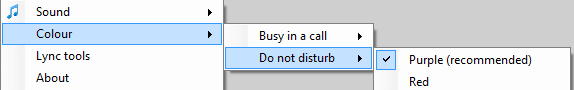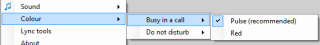 As with the Lync client itself, Green is available, Yellow is away, Red is busy. However it doesn’t stop there. Flashing Red indicates that you’re on a call and Purple indicates do not disturb. The colors, if you were wondering, are customizable if you want to play with the registry. Personally I’m fine leaving it alone since changing the colors could quickly defeat the purpose. Remember the Jellybean for OCS?