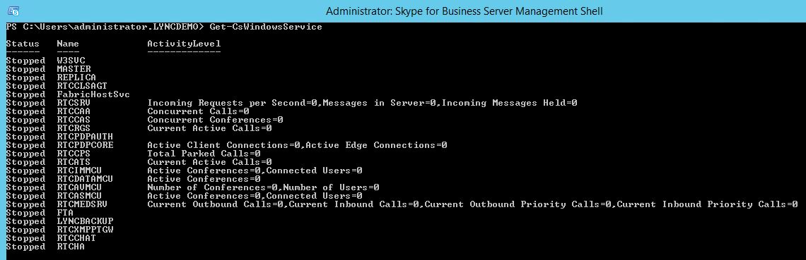 Start with stopping the Skype for Business services. In the Skype for Business Management Shell run the following: