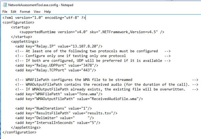 The contents of the zip file include the usual EULA along with two applications, the DLL’s, a config file and a Usage doc. The Usage doc just tells you what it does and how to run it. The config file has some configuration information including the Relay IP of the Skype for Business network Edge. The usage doc also includes an explanation of the keys contained in the config file.