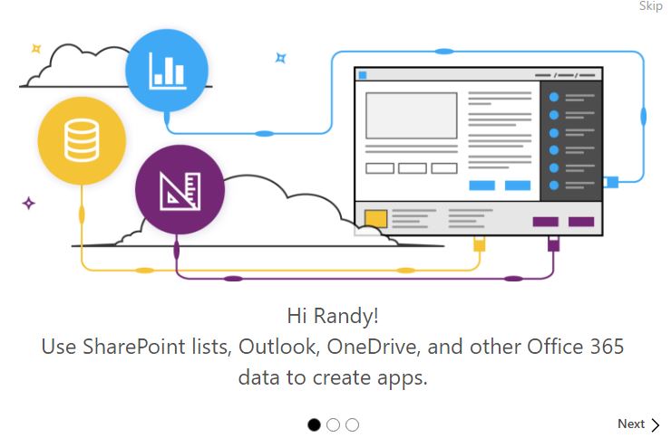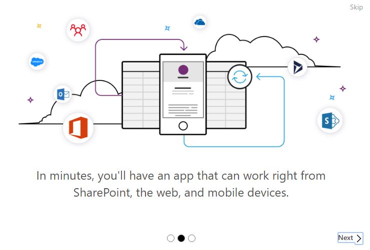A quick run through of PowerAppsOpen PowerApps for the first time and you see a splash screen which tells you quickly what you can do with it.