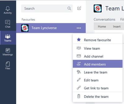 1. Click on the menu (three dots) next to a team you want to manage, then add members.