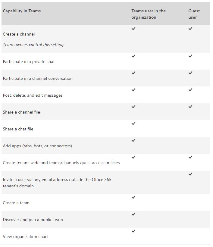 Capabilities of Guest Users in Teams