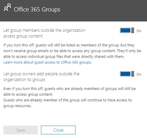 In Office 365 groups: Let group owners add people outside the organization to groupsFor more information, see Control guest access to Microsoft Teams.