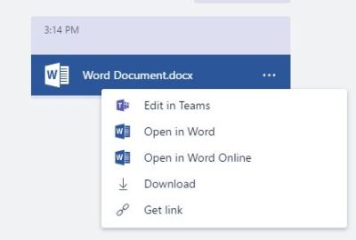 Once a file is added to a conversation it uploads it to the file store within the Channel and Team, which is SharePoint Online on the back end. Once there it can be edited in Office, Office online or directly in Teams. It can also be co-authored if the user clicks Share and invites someone. Files can be downloaded, edited, copied, moved between Channels (within the same Team only) or deleted (again to the recycle bin).