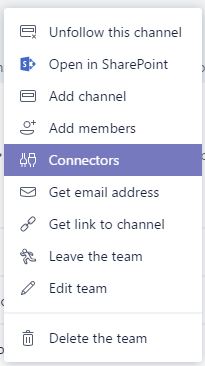 A Connector is used to bring external services into a Channel or Team. There are connectors from Microsoft, of course, for services like Visual Studio Team Services, Dynamics 365 and Yammer as well as 3rd party services like Trello, Salesforce, Wunderlist and Twitter to name a few. In fact, there are dozens of Connectors. So many, in fact, you can filter by category to make it easy to find what you’re after.