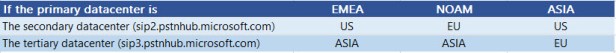 The table below shows the relationship of primary secondary and tertiary connection points. In this example, if your tenant is in the EU, your primary connection point will be in the EU, secondary in the US and tertiary in Asia.