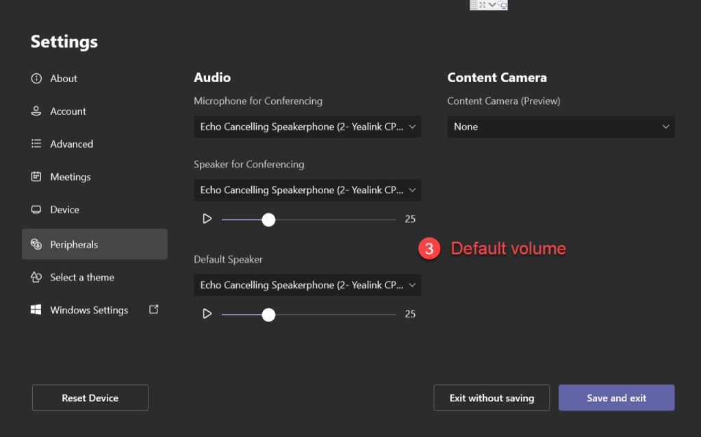 - Adjustable default volume setting for conferencing and default speaker