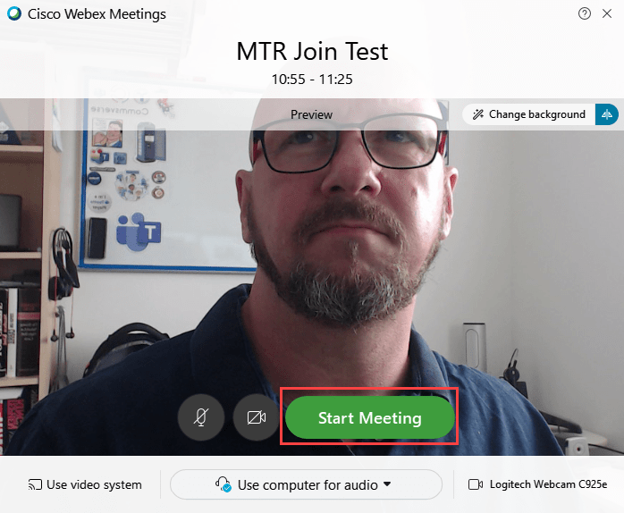 When it’s time to start the meeting, the display changes and the meeting join tile adopts “Cisco colours”.