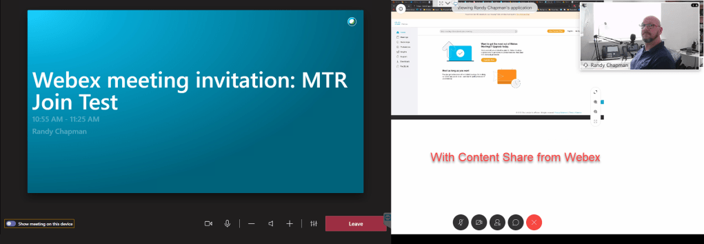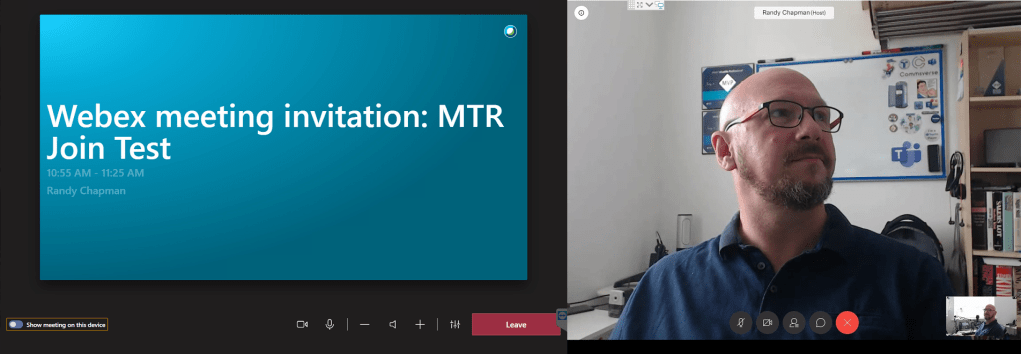 However, sharing from the MTR into into the Webex meeting doesn’t work. In fact, when you’re in the Webex meeting on the MTR, you can’t even present locally to the in-room display.