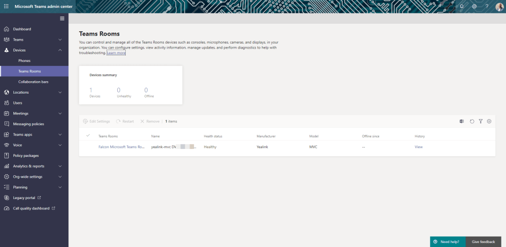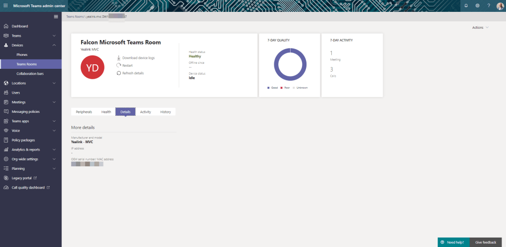 This is another big one. You can now see and manage certain things on Microsoft Teams Rooms in the Teams Admin Centre (TAC).