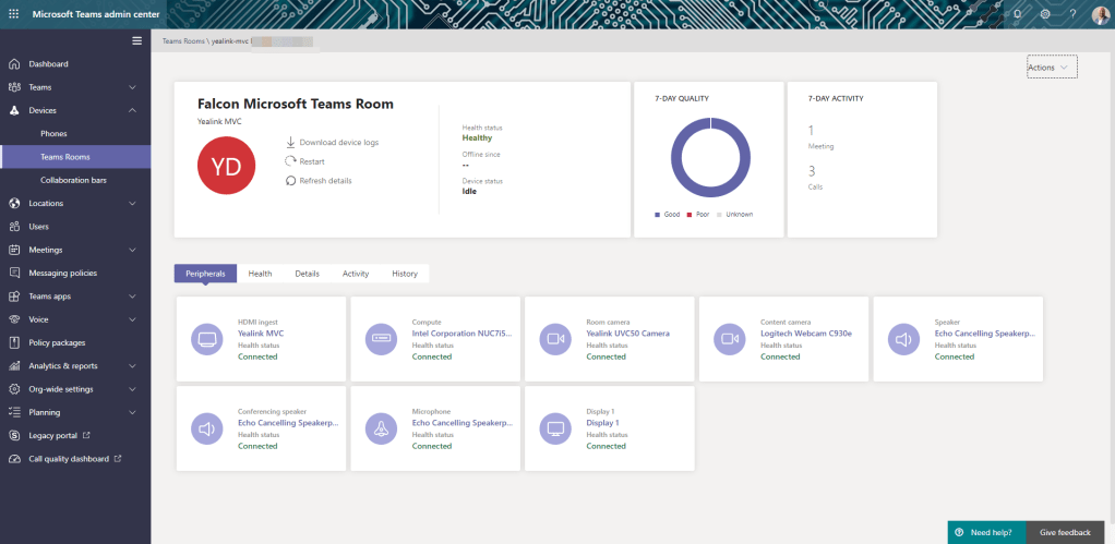 This is probably the first iteration of meeting rooms being in the TAC. I hope more will come to this. Because right now it’s just a health portal, meeting log and troubleshooting tool and a restart button. It’s a start and I certainly appreciate it.