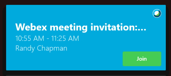 You can see below that the meeing is displayed and that has teh Cisco Webex logo in the corner. And it has a join button.