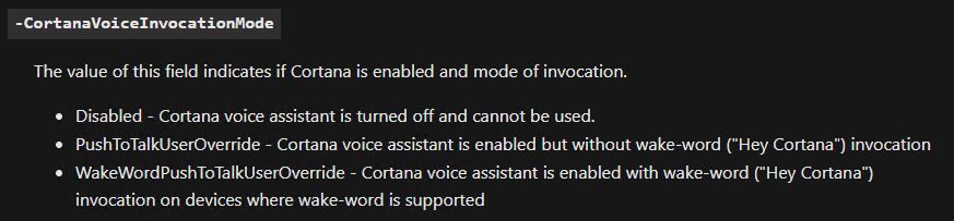 You need to create a new policy, or change an existing one by using New or Set-CsTeamsCortanaPolicy. Then you can decide the behaviour by changing the Cortana Voice Invocation Mode parameter.