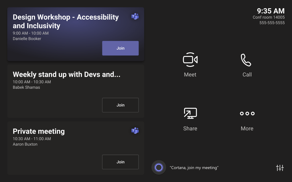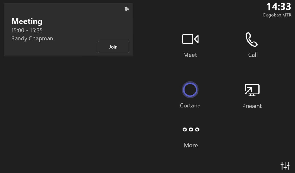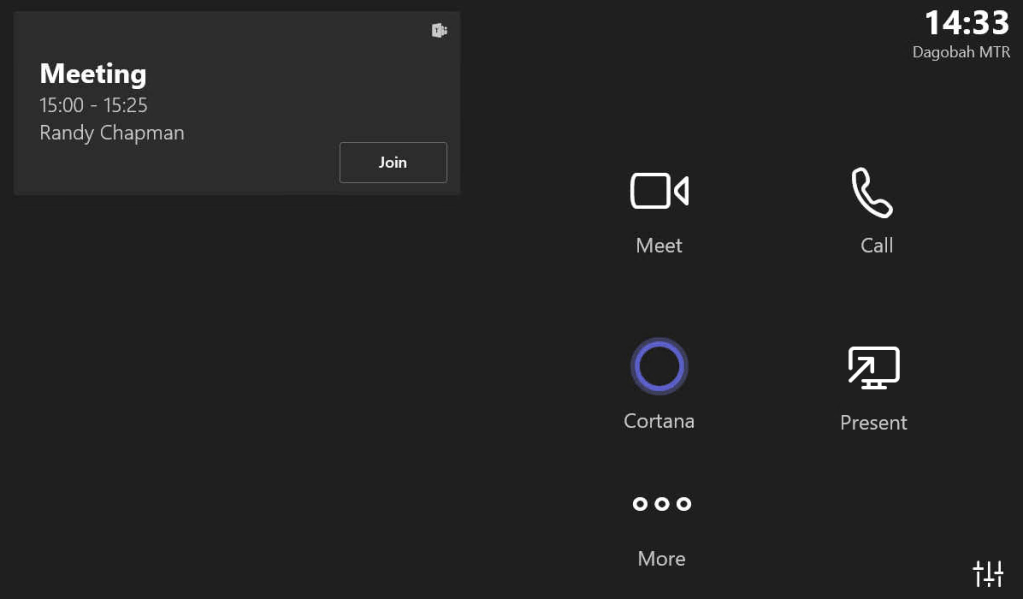Remember, having the button on the main screen just means you can tap Cortana to make it do something while not in a meeting. Like call a room or user by name, or start your next meeting. You can still say it. And you can still see the button while in a meeting.