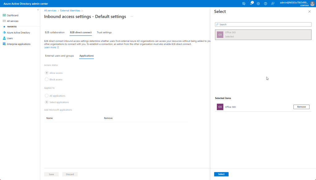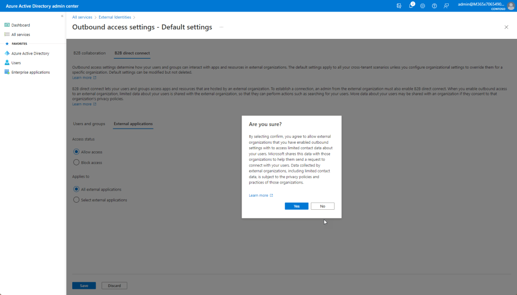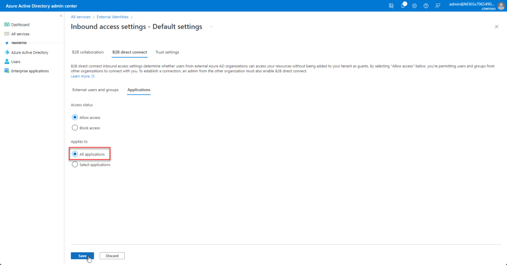 B2B Direct Connect tab – external users and groups – allow access