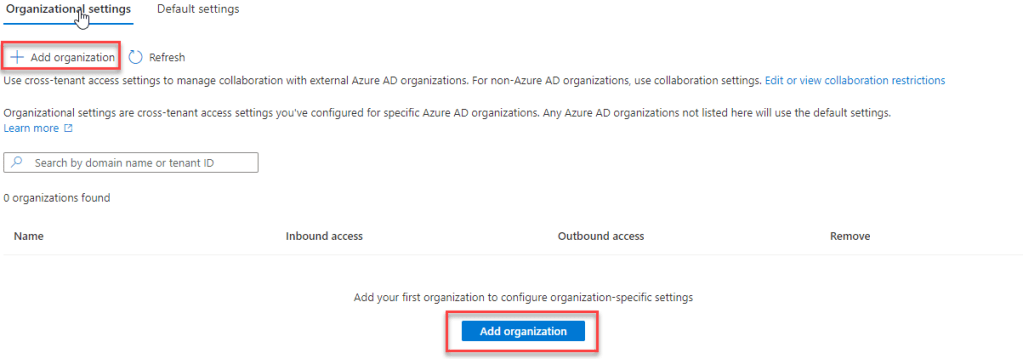 and Cross tenant access settings (preview)