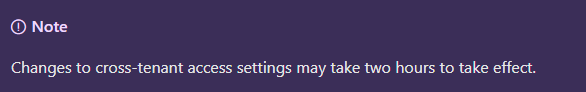 after clicking save you should see that the cross tenant access settings were successfully updated