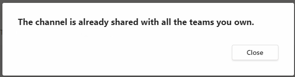 You can also share with the channel with a team you don’t own. You select a team owner and it send an invite to them. They can then choose a team they own and add the channel to it.