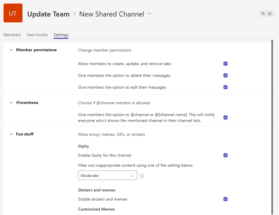- Invite external users to shared channels is self explanatory as well. Maybe you want someone else to create shared channels, but you can empower users to invite external users to the party.