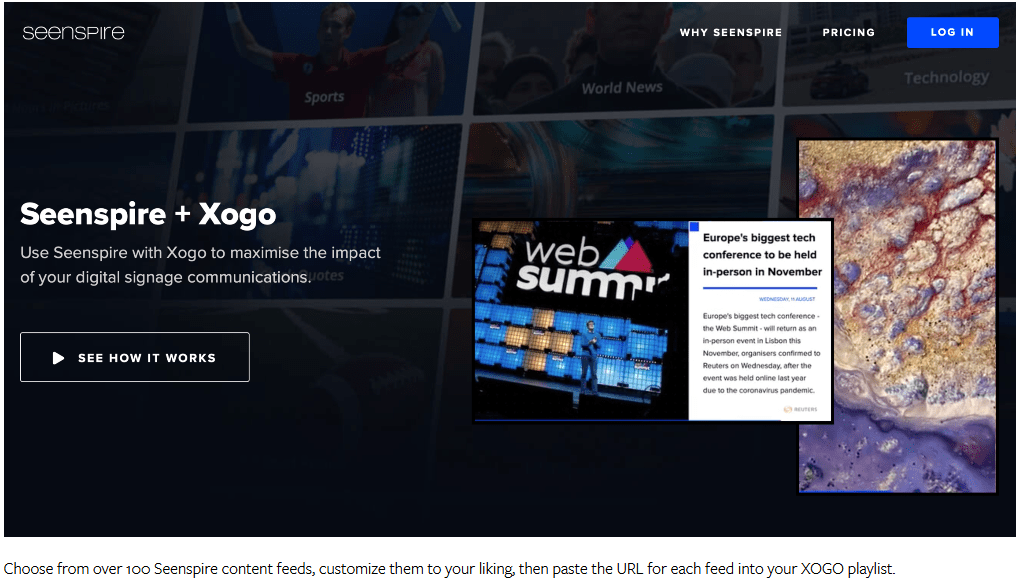 If you go to the XOGO website at https://xogo.io you’ll see that they are cloud hosted digital signage platform which plays your graphics, video files and web content as digital signage. Content and playlists can be scheduled to play on the days and the time you want. They sell mini players which turn TV or commercial displays into digital signs.