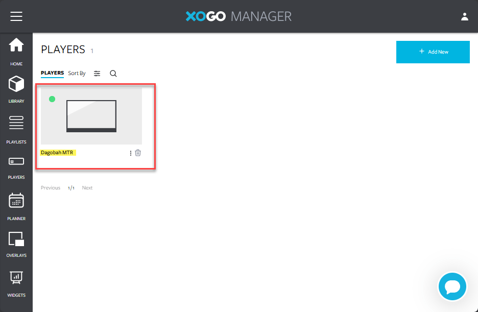 If you added the player through the Teams integration using the integration ID, and assigned it to a room in PMP you will see the player listed here along with the room name. If you only added XOGO as a signage source but haven’t assigned it to a room you’ll see the player, but without the room name.