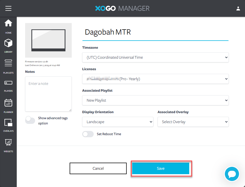 At this point there is a playlist and a player. You need to assign the playlist to the player. Open up the player to edit the details.