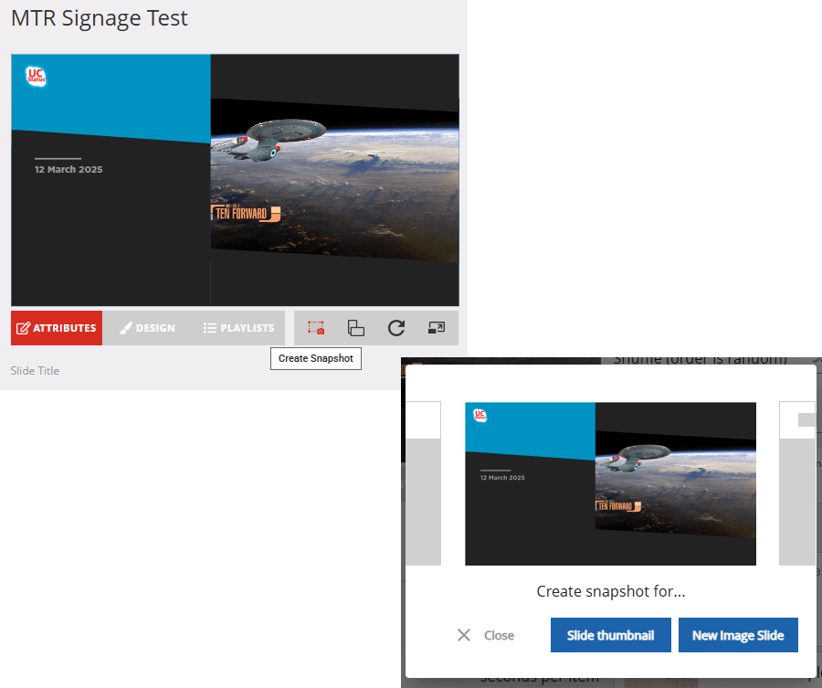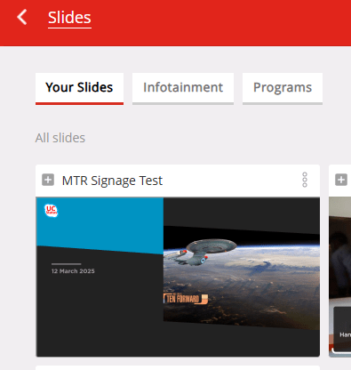 you can also add the slides you’re creating to an existing playlist. I’ll get to playlists in a bit. Toggle one of these to add the slides with the content you just created to one of these playlists.