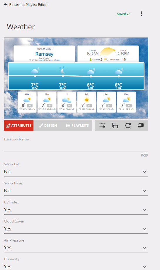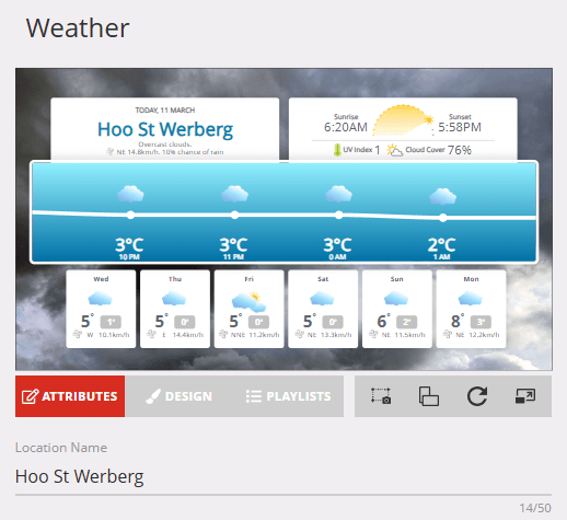 I’m going to edit the weather slide. Weather slides are always great to add to digital signage.