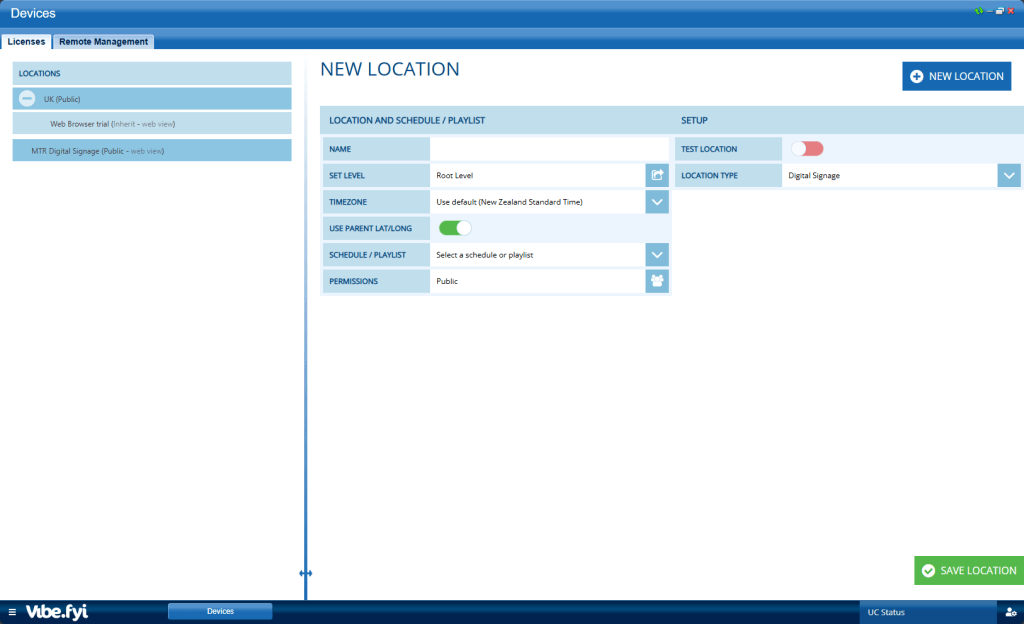 click on licenses. This opens up the new location page.